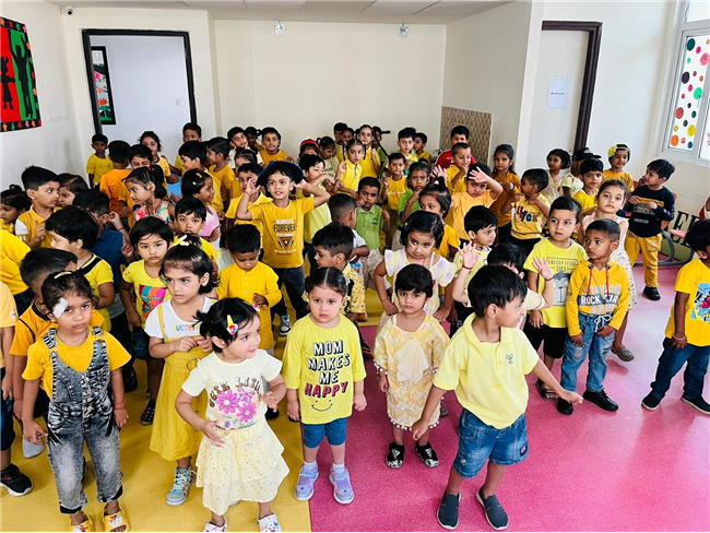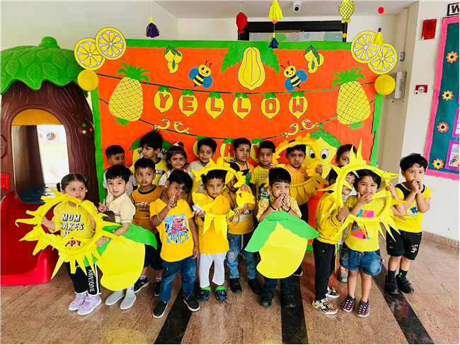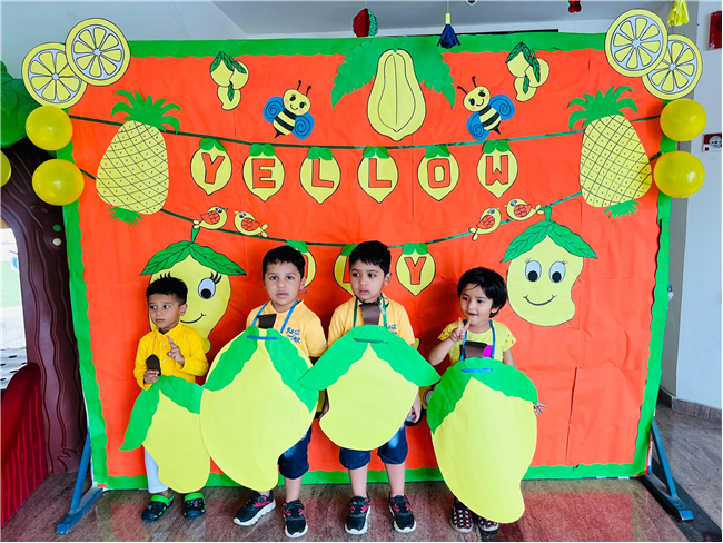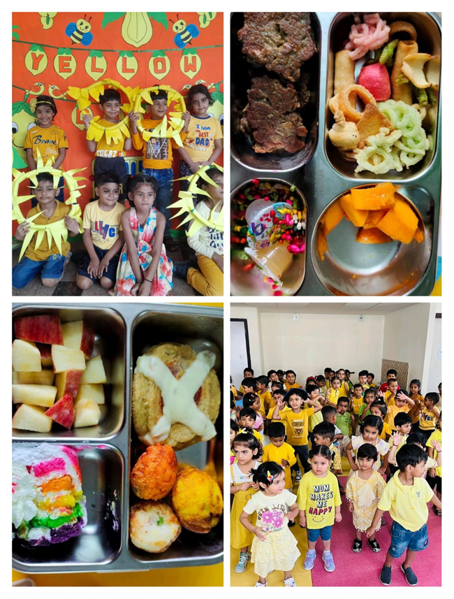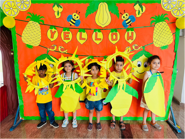 Greenberry World School adopted a novel way to teach the colour yellow to the kindergarten students... All things yellow were displayed and students wore yellow coloured dress with tiffin full of fruits, vegetables and snacks that matched the colour. Rhymes on the colour were learnt and recited. It spread the happiness that matched the sunshine !!